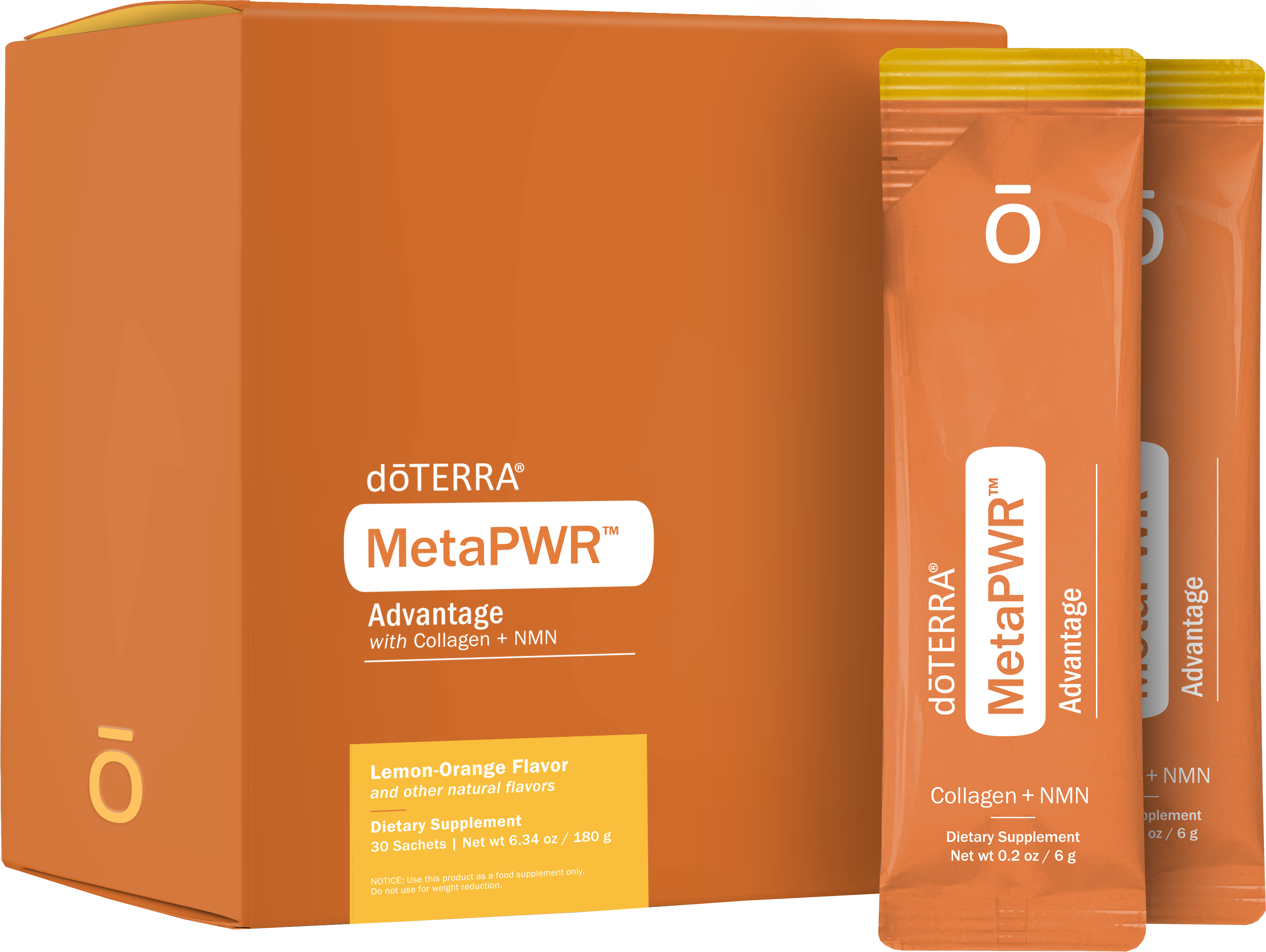 MetaPWR Advantage provides NAD+, collagen, and other natural ingredients to support healthy aging on a cellular level. While most collagen products on the market have only 1 or 2 types of collagen, MetaPWR™ Advantage provides nine types of collagen tripeptides from sustainable marine sources, infused with doTERRA® CPTG® essential oils.